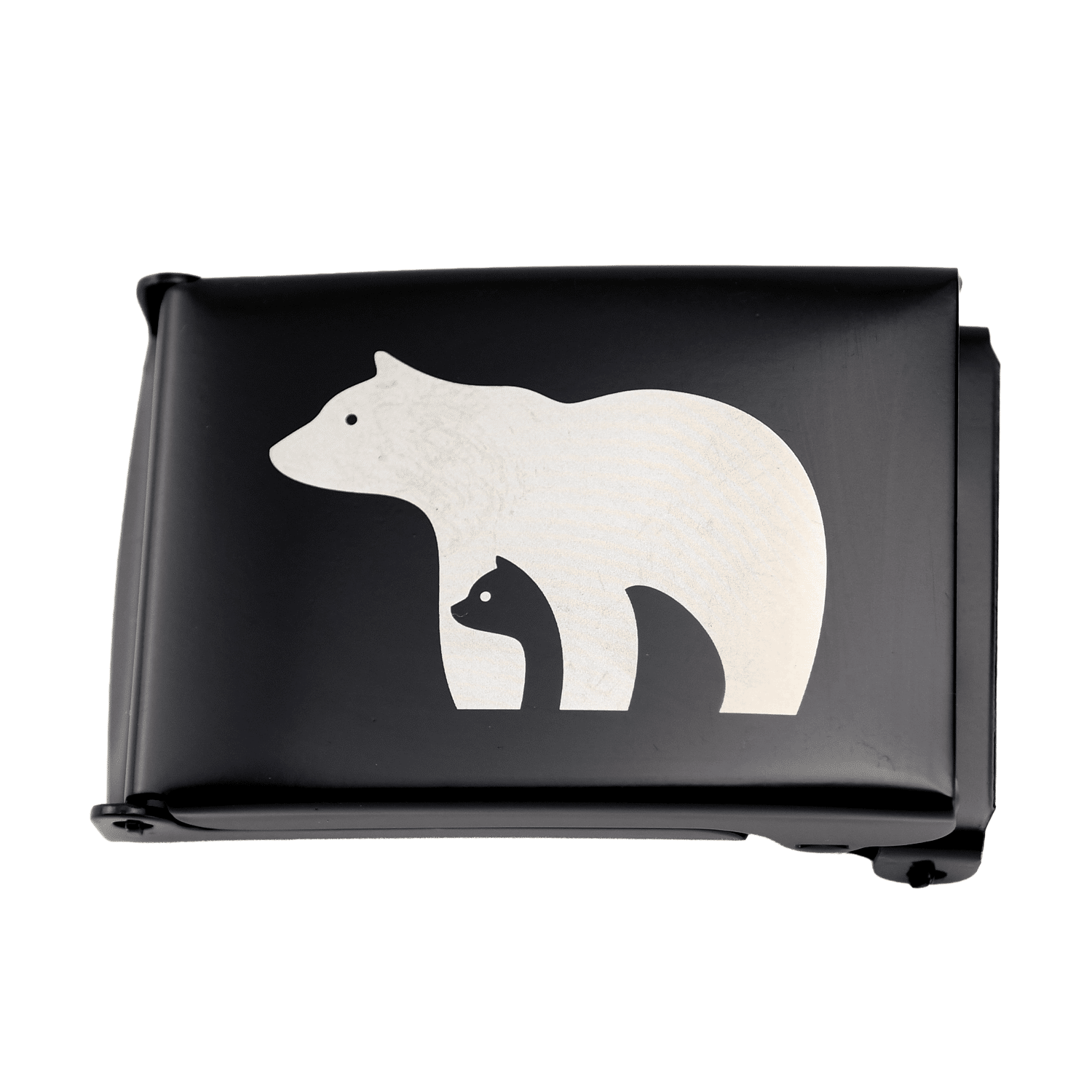 Black military belt buckle for 1.25″ webbing – laser engraved: Bear and cub