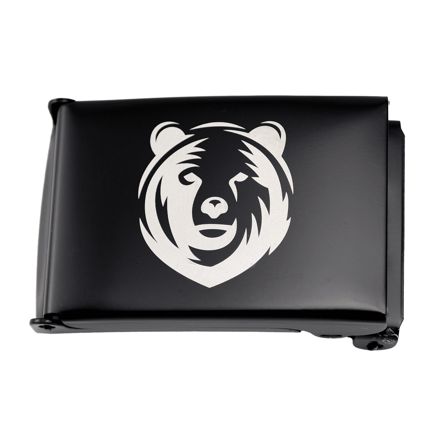 Black military belt buckle for 1.25″ webbing – laser engraved: Grizzly Bear